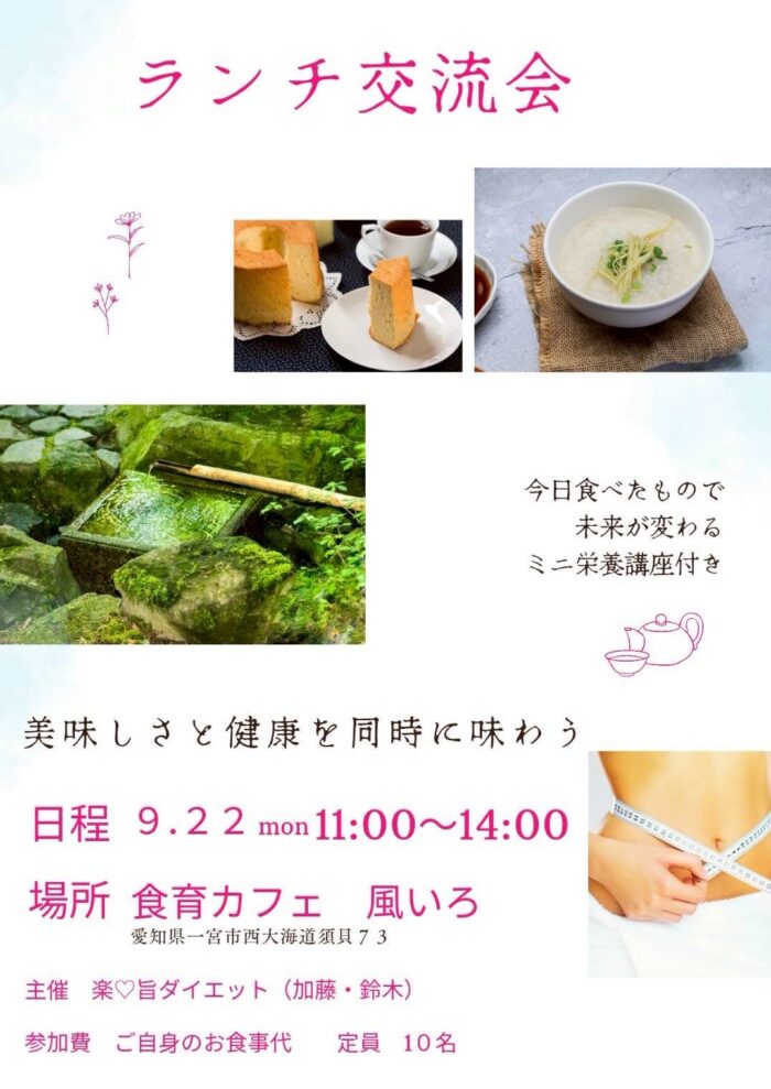 『今日食べたもので未来が変わる』をコンセプトに、美味しさと健康を同時に味わうことができるミニ栄養講座つきの交流会となります。
